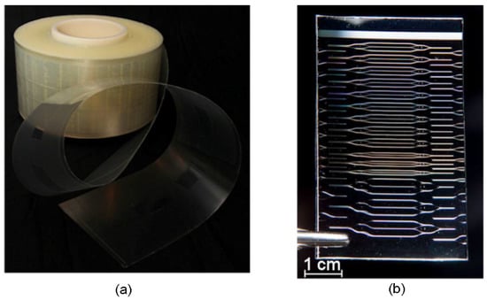 - Aikio, S.; Hiltunen, J.; Hiitola-Keinänen, J.; Hiltunen, M.; Kontturi, V.; Siitonen, S.; Puustinen, J.; Karioja, P. Disposable photonic integrated circuits for evanescent wave sensors by ultra-high volume roll-to-roll method. Opt. Express 2016, 24, 2527–2541. [Google Scholar] [CrossRef] [PubMed]