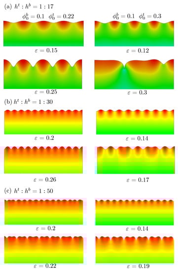 - Cai, S.; Breid, D.; Crosby, A.J.; Suo, Z.; Hutchinson, J.W. Periodic patterns and energy states of buckled films on compliant substrates. J. Mech. Phys. Solids 2011, 59, 1094–1114. [Google Scholar] [CrossRef]