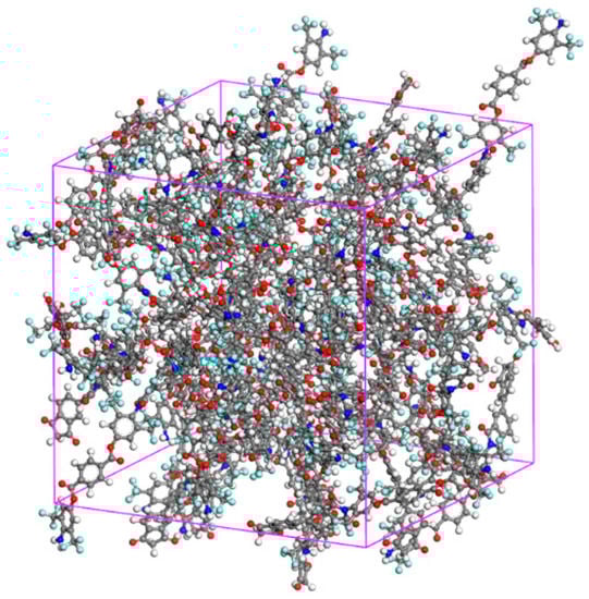 MD simulations were performed with the Materials Studio software. In the simulations, a COMPASS II force field, including a coupling-effect energy term, was used to consider complex chain relationships in an amorphous polymer. The total potential energy equation is expressed as follows [,]: