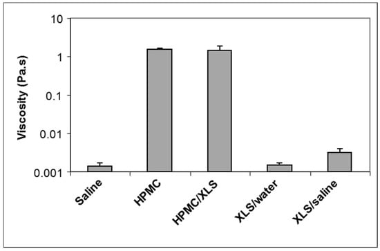 The viscosities of matrices surrounding fluorescent microspheres in different systems. For HPMC/XLS system, matrix means the loose part in dark area. Each data point represents mean ± SEM for n ≥ 3 samples.