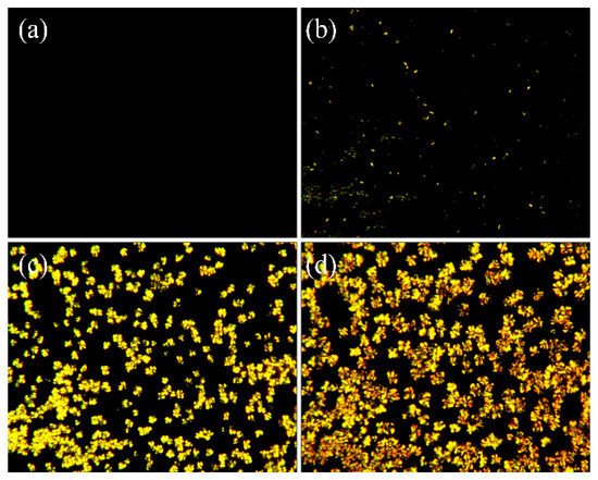 Polaring optical microscopy (POM) of the process of growth of the PEN-Ph crystals at 280 °C. (a) 0 min; (b) 10 min; (c) 30 min; (d) 60 min.