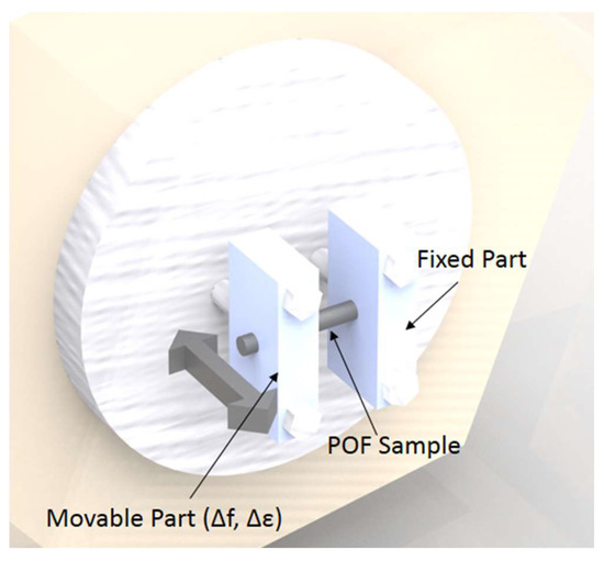 Polymer optical fiber (POF) fixation in the dynamic mechanical analysis (DMA) used in the Young’s modulus characterization with respect to the frequency.