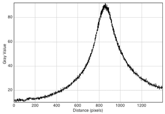 A pixel profile scan taken along the axis of the catheter, i.e., the centralvertical axis in Figure 15. The pixel resolution is 0.035 mm/pixel with a total scan length of approximately 50 mm.