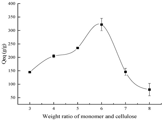 3.1.1. Effect of the Monomer/Cellulose Weight Ratio on the Water Absorbency