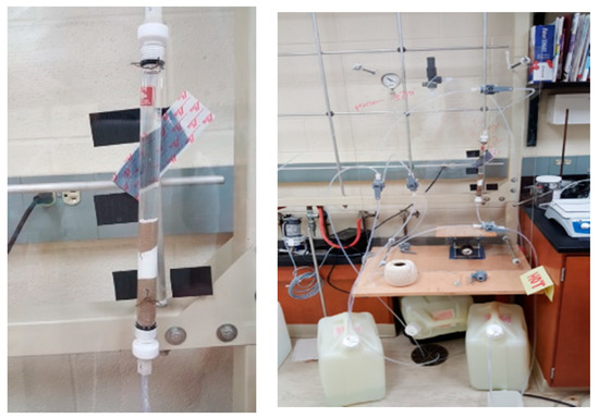 Figure 2. Full pressure apparatus shown on the right. Left image shows a packed column using sand and ion exchange resin.