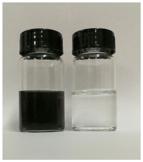 The carbon ink suspension was selected to test the particle rejection of the membrane (M4). It can be seen from Figure 17 that the permeating solution is transparent compared with the feed and the turbidity is nearly zero. This indicated that the rejection of the carbon black particles is nearly 100%, which indicated a better rejection capability.