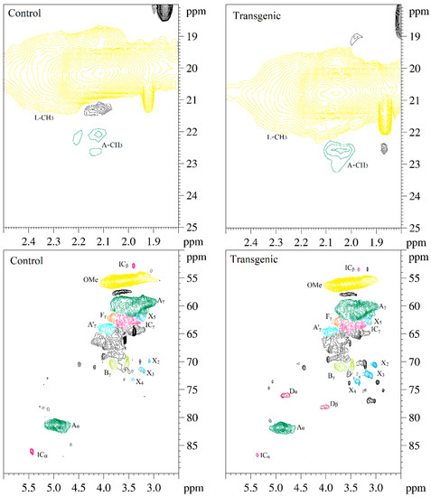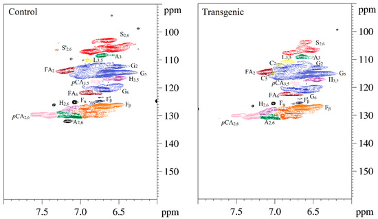 The 2D-HSQC NMR spectra of LCs from transgenic and control switchgrass.