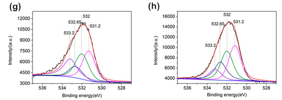 The XPS spectra of untreated silk and DA-treated silk samples were measured. Their wide-angle scanning spectra (a), C1s (b, c, d, e, f), and O1s (g, h) spectra are shown in Figure 6.