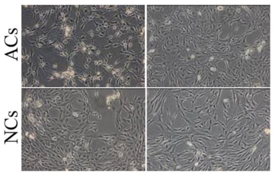 Figure 2); however, at the same culture condition, ACs and NCs reached 70% of confluency in 14 and eight days, respectively.
