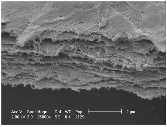 SEM micrograph of bacterial cellulose/pectin composite is presented in Figure 4.