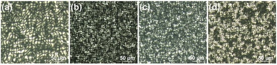 Liquid-crystalline polyesters reprocessed with various carbon nanomaterials. Polarized optical microscopy (POM) photographs captured at 30 °C: (a) PBDPS, (b) PC60 (0.5%), (c) PCNT (0.5%), and (d) PG (0.5%). Labels: PBDPS, phenyl succinate-based main chain LC polymer; PC60, composite sample made of PBDPS including fullerene C60; PCNT, composite sample made of PBDPS including carbon nanotubes; PG, composite sample made of PBDPS including graphene. Reproduced with permission from the authors of []. Copyright © 2018 Elsevier.