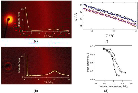 - Davison, P. X-ray diffraction by liquid crystalline side-chain polymers. Prog. Polym. Sci. 1996, 21, 893–950. [Google Scholar] [CrossRef]