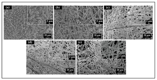 - Lee, K.H.; Kim, H.Y.; Bang, H.J.; Jung, Y.H.; Lee, S.G. The change of bead morphology formed on electrospun polystyrene fibers. Polymer 2003, 14, 4029–4034. [Google Scholar] [CrossRef]