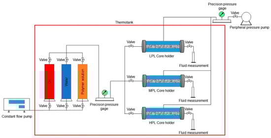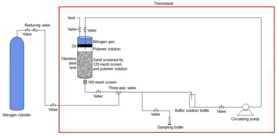 The schematic of a polymer flooding experiment is shown in Figure 2. The experimental procedure follows: