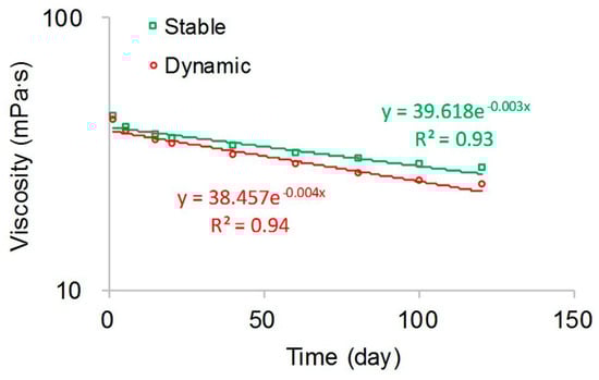 - 20 mL of the polymer solution was sampled after 1, 5, 15, 20, 40, 60, 80, 100, and 120 days, and its viscosity was measured at 45 °C. Notably, that oxygen was prevented from entering during the sampling process.