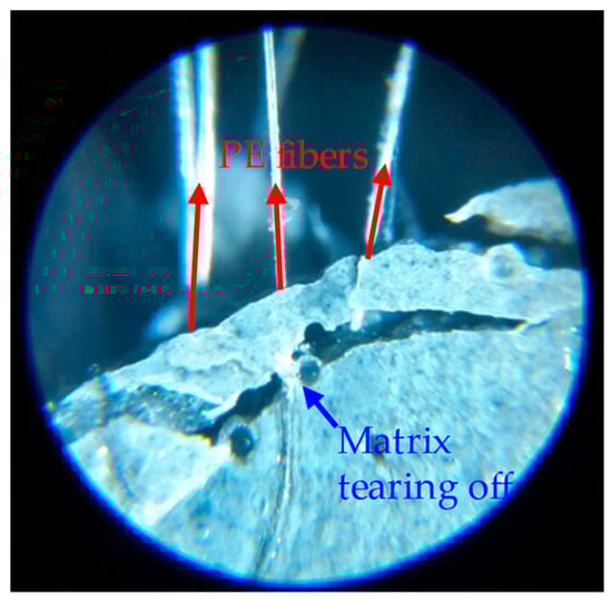 Matrix tearing off phenomenon of PE fibers in UHPCCs.