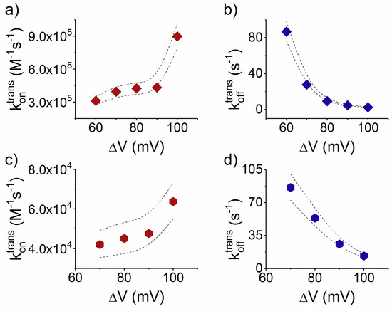 Experimental data derived for association rates (kon, see Figure 6) indicate that, at high voltages (|ΔV| > 100 mV):