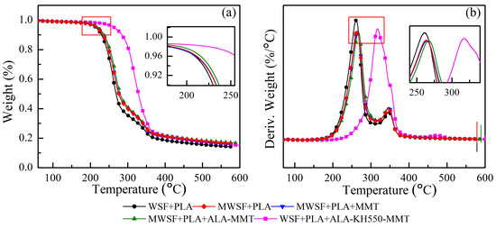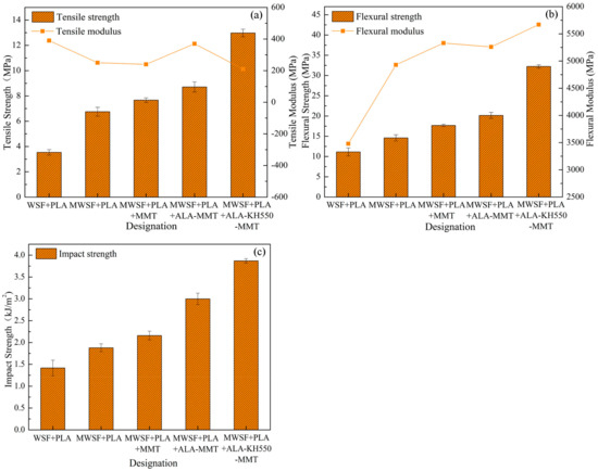 - Liu, R.; Cao, J.; Luo, S.; Wang, X. Effects of two types of clay on physical and mechanical properties of poly (lactic acid)/wood flour composites at various wood flour contents. J. Appl. Polym. Sci. 2012, 127, 2566–2573. [Google Scholar] [CrossRef]