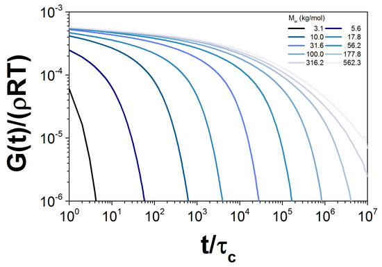 where is a critical molecular mass and is a characteristic relaxation time for a polymer with a molecular mass M. This modulus can also be expressed in terms of the relaxation spectrum, ,