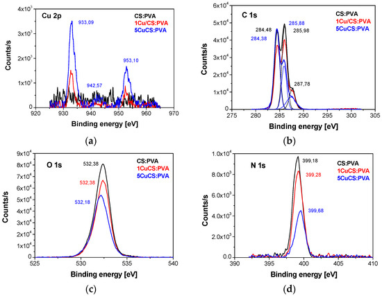 | 10Cu/CS:PVA | 51.4 ± 4.3 | 0.28 ± 0.04 | 0.218 | 1.354 ± 0.117 | 130 ± 32 |