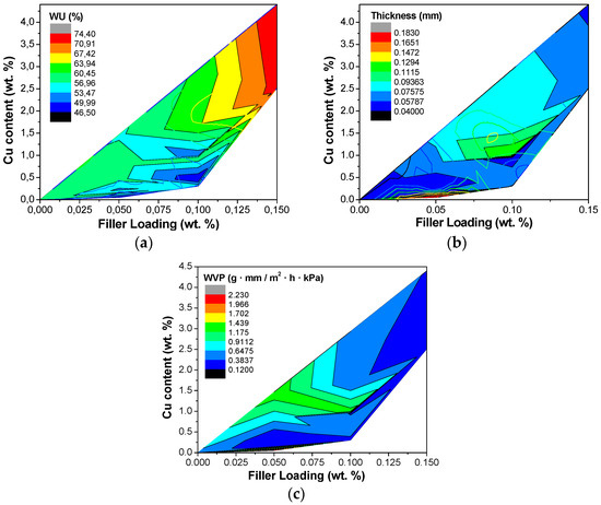 | 10CuBEA/CS:PVA | 58.3 ± 5.6 | 0.21 ± 0.02 | 0.33 ± 0.07 | 0.287 ± 0.042 | 53 ± 2 |