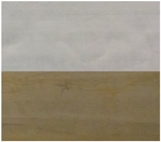 Visual inspection of an epoxy resin showing discoloration due to hygrothermal aging. Top: initial (blueish grey); bottom: redried after conditioning (yellow).