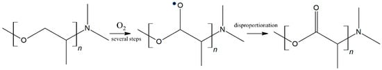 δ+POPA-I site as a polyoxypropylene moiety-containing segment is very susceptible to radical attack under oxidation, due to low stability of the tertiary C-H bond and the destabilizing effect of the neighboring ether group [10,41]. The proposed carbonyl formation reaction on this site is shown in Scheme 2.