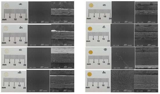 The morphology was examined while using scanning electron microscopy (SEM) with a JEOL scanning electron microscope (JSM-5410LV, JEOL Ltd., Peabody, MA, USA) at 10 kV under low vacuum mode. The film characterizations were performed without any coating solution at magnifications of ×150. The thickness and surface of films were evaluated.