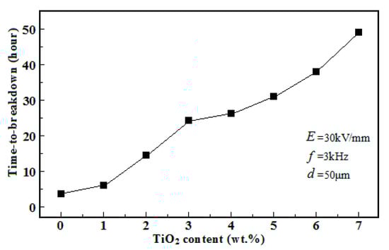 Time-to-breakdown data for PI/TiO2 composite films with different TiO2 contents.