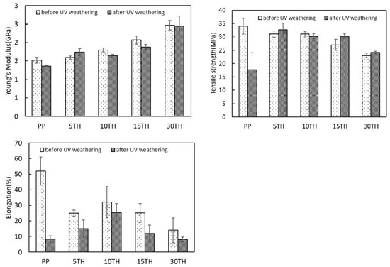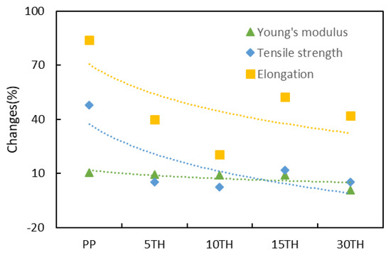 - Wu, C.; Zhang, M.; Rong, M.; Friedrich, K. Tensile performance improvement of low nanoparticles filled-polypropylene composites. Compos. Sci. Technol. 2002, 62, 1327–1340. [Google Scholar] [CrossRef]