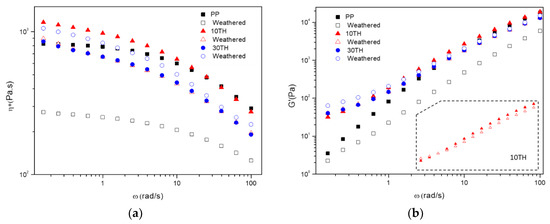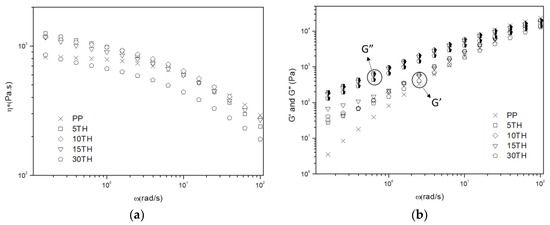 - Azizi, H.; Ghasemi, I. Investigation on the dynamic melt rheological properties of polypropylene/wood flour composites. Polym. Compos. 2009, 30, 429–435. [Google Scholar] [CrossRef]
