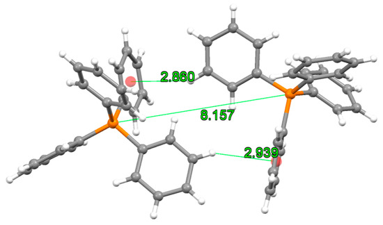 Interactions found between the closest (PPh4)+ cations in the structure of 6. Distances are shown in Å.