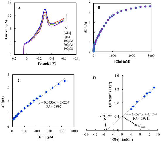 - Mani, V.; Devadas, B.; Chen, S.M. Direct electrochemistry of glucose oxidase at electrochemically reduced graphene oxide-multiwalled carbon nanotubes hybrid material modified electrode for glucose biosensor. Biosens. Bioelectron. 2013, 41, 309–315. [Google Scholar] [CrossRef] [PubMed]