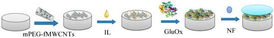 3.2. Electrocatalytic Behaviors of the NF/GluOx/IL/mPEG -fMWCNTs Modified GCE