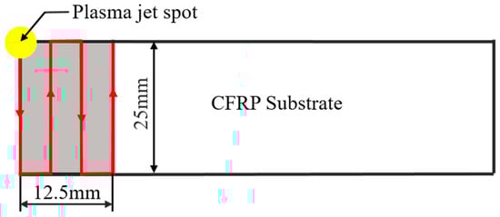 Illustration of the relative motion path between plasma jet and carbon fiber reinforced polymers (CFRP) substrate.