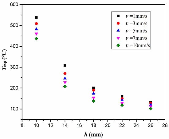 The measured temperature of CFRP substrate surface () as a function of nozzle speed ( ) and nozzle distance ().