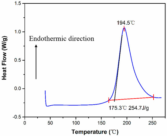 Differential scanning calorimetry (DSC, TA Instruments, Newcastle, DE, USA) was tested on a TA Instruments DSC Q100 to investigate the chemical reaction temperature of epoxy resin. Epoxy resin with a weight of 4.810 mg was placed in a hermetic crucible, and an empty crucible was used as a reference. The temperature range of quantitative dynamic scanning was from 0 °C to 250 °C at a heating rate of 10 °C/min.