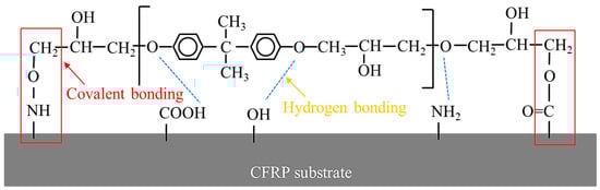 Activated groups and adhesive molecules forming bonding on the CFRP substrate surface.
