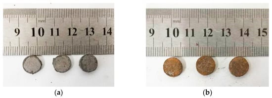 According to the requirements of different test types, several sets of samples of different sizes were designed, including ø10 × 3 mm, ø10 × 10 mm, and ø10 × 30 mm. The pre-sintering and post-sintering states of the specimens of different sizes are shown in