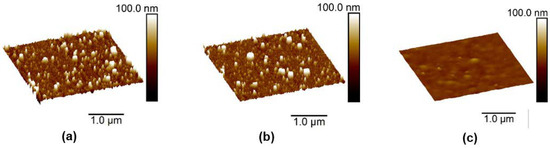 Atomic force microscopy 3D height images of (a) (BPEI/ARS)20, (b) (ARS/(PSS+ARS))20 and (c) ((BPEI+ARS)/PSS)20 films.