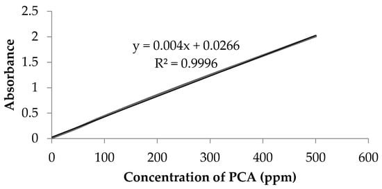 The PCA standard line based on Folin–Ciocalteau method was established as follows (Figure 1).