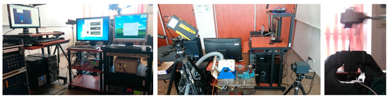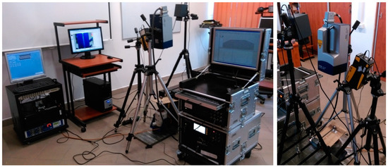 The author’s earliest studies on the determination of a critical value of the self-heating temperature were based on an approximation of the history curves, using a double-exponential model. The mentioned history curves referring to the loading force history (related to a stress), vibration velocity history (related to a strain), and the self-heating temperature history appeared on the surface during cyclic bending of a PMC structure. The measurements were performed in an own-designed laboratory test rig, which loaded PMC specimens in cantilever bending mode. The pictures of the apparatus used for the performed tests are presented in Figure 5. The test rig was equipped with an electrodynamic shaker with amplifier for the excitation of a tested specimen, a force sensor, and an accelerometer used for monitoring and controlling the process, a laser Doppler vibrometer focused on a tested specimen for measuring vibration velocity, an infrared (IR) camera used for the registration of a thermal response of a tested specimen, and an AE system with a single sensor glued directly to a specimen in its non-loaded part (see Figure 5c). The details on the equipment used, as well as the measurement parameters, can be found in [132].