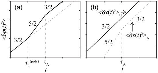 To get the scalings of the anomalous diffusion in Equations (23), (30) and (A11), we focus on the first term on the right side. In the case of the viscous media, we use to obtain Equations (23) and (30).