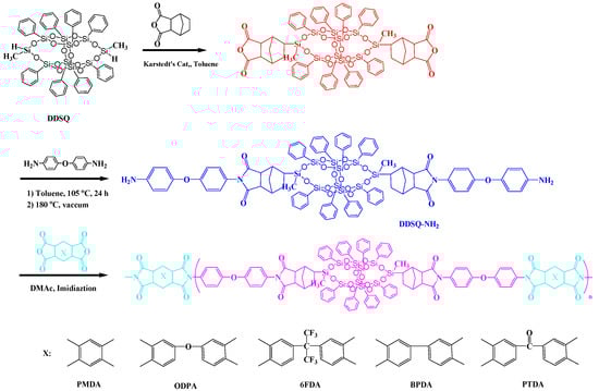Preparation of organic/inorganic PIs with DDSQ in the main chain [82]. Reproduced with permission from the Royal Society of Chemistry.