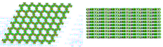 Top-down and side view of covalent triazine frameworks (CTF)-1, with a crystalline ordered structure [6].