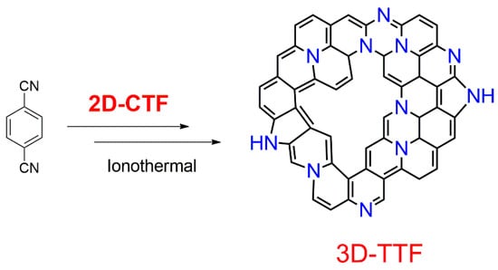 - Katekemol, P.; Roeser, J.; Bojdys, M.J.; Weber, J.; Thomas, A. Covalent triazine frameworks prepared from 1,3,5-tricyanobenzene. Chem. Mater. 2013, 25, 1542–1548. [Google Scholar] [CrossRef]