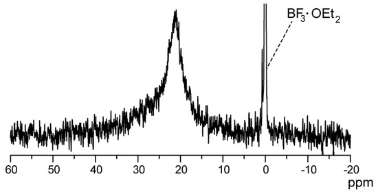 11B-NMR spectrum of poly(NIPAAm-block-NIPAAm-co-PBA) in DMSO-d6 solvent at ambient temperature. BF3·OEt2 was adopted as the internal reference.