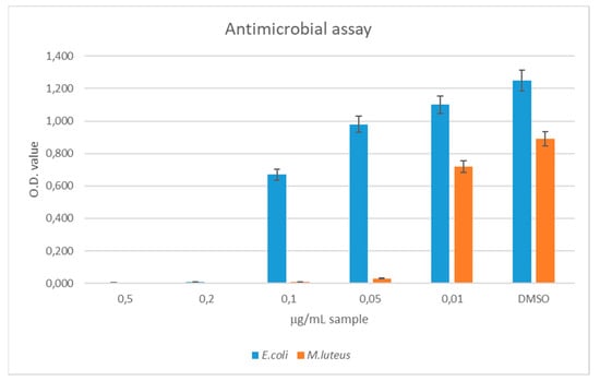To this aim, the oil was introduced into the culture medium and the optical density was measured at different concentrations. Results reported in