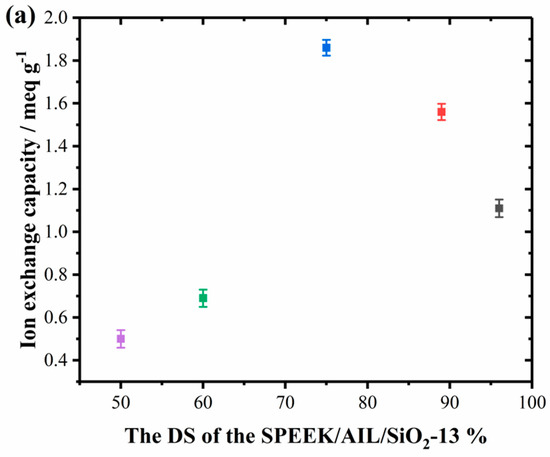 - Dong, Y.F.; Tan, X.L.; Guo, Q.; Li, X.; Li, D.; Li, M. Testing the sulfonation degree of SPEEK and its effect on the properties of proton exchange membrane. Phys. Test. Chem. Anal. Part A 2011, 47, 535–538. [Google Scholar]