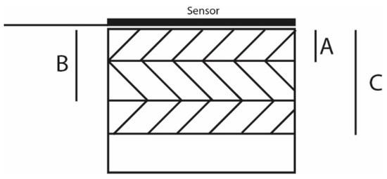 The probing depth can be varied by adjusting measurement times so that the skin-layer effect can be explicitly studied alongside the determination of overall TC values. Longer measurements allow the heat wave to travel further, thus allowing to measure TC over a larger volume, as can be seen in Figure 3. Measuring for a short time results in a low measuring depth (A), and will measure the TC of what is mostly the skin layer. At half of the sample thickness (B), the overall value results assume that the morphology is identical for both sides of the sample. Longer measurements (C) give values of the TC of a larger sample volume and will relatively contain more core layers.